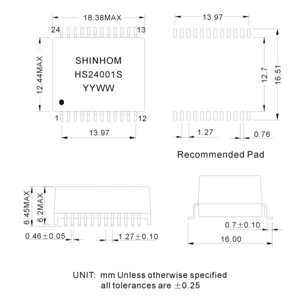 HS24001S 1000Base-T transformer module,Power/Circuit SMD Lan Transformer,24 Pins